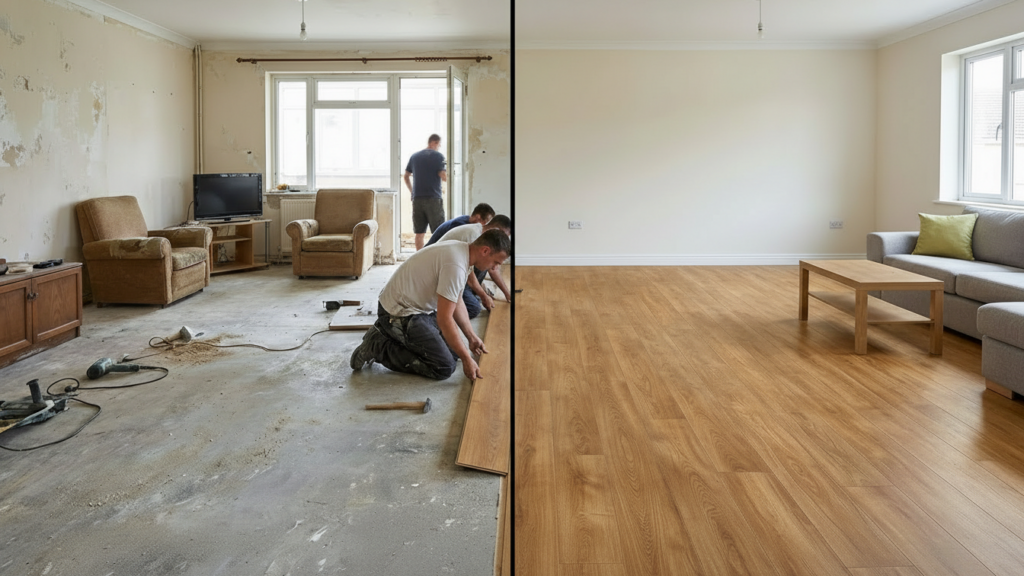 Professionele installatie van duurzame laminaatvloeren voor elke ruimte in uw woning.